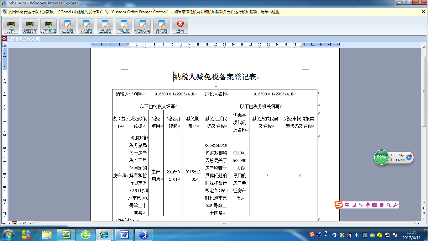 | 1 | 031003006《纳税人减免税核准表》 | |