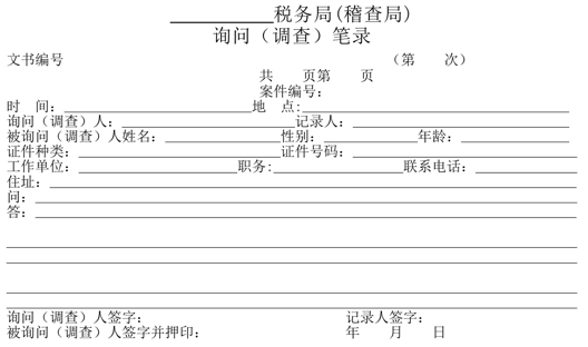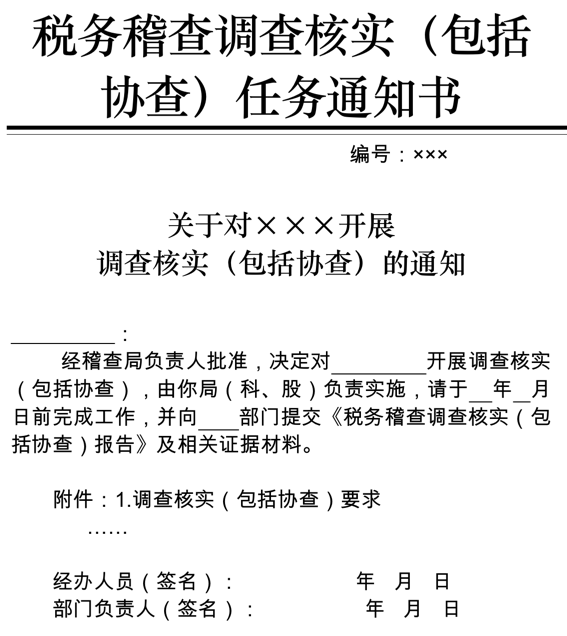 - 112001009 《税务稽查调查核实(包括协查)任务通知书》